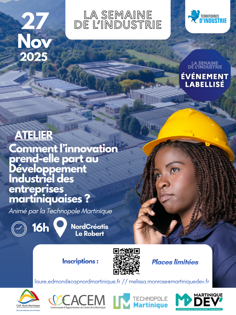 Dans le cadre de la semaine de l’industrie, CAP Nord Martinique et Technopole Martinique, direction de la CACEM, vous convient à un l’atelier :